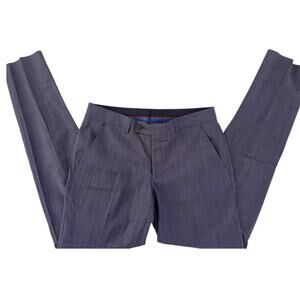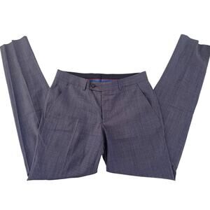 Ted Baker Karl Slim Fit 100% Wool Dress Pants, Micro Plaid Blue | 33 Short Unhem