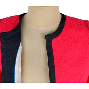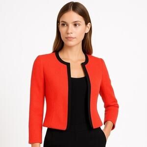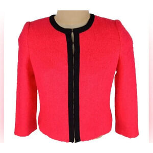 Ted Baker Kerisa Blazer Jacket Neon Red Cropped Tweed Boucle 3/4 Sleeve 0 XS