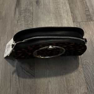 Ted Baker LIONA Leather Leopard Circle Handle Crossbody Black Purse Handbag