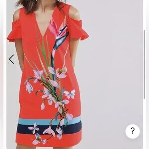 Ted Baker Leea Orange Colorful Floral Print Cold Shoulder Dress Size 2 V Neck