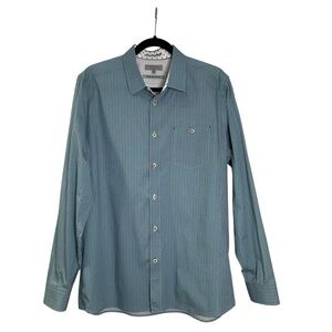 Ted Baker London 5 (XL) Stonelo Slim Fit Blue Geo Print Long Sleeve Button Down