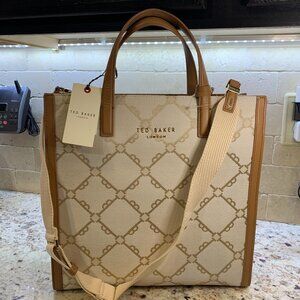 This gorgeous Ted Baker London Beige Overflow tote bag is brand new with tags still attached. Large leather hangtag and removable crossbody strap.