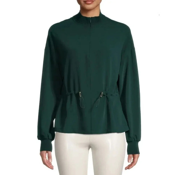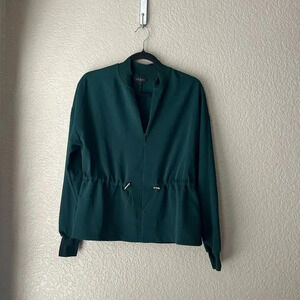 Ted Baker London Bianka Zip-Neck Blouse Size 1 4 Forest Green Mock Neck