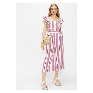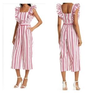 Ted Baker London Birdiee Red Pink&White Ruffle Stripe Cropped Jumpsuit Sz.3(US 8/10)