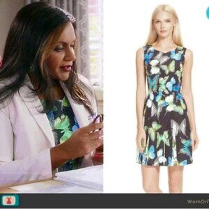 Ted Baker London Engrid Butterfly Black Blue Pleated Skirt Dress Zipper back, sleeveless. Lined. Sleeveless. Polyester. As seen on TV’s The Mindy Project.