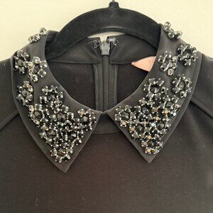 High quality black long sleeved Ted Baker London Dress with collar with black beaded detail and cuffed sleeve detail.