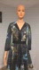 Chic black dress with striking blue and yellow floral accents. Long sleeves and elegant fit.
