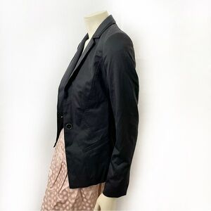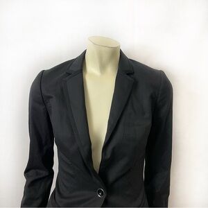 Ted Baker London Black Fitted Tailored One Button Blazer Jacket with floral interior wool blend Shoulder pads Slimming waist, sleek modern silhouette