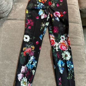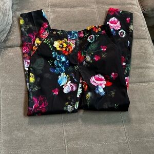 Elegant high waist shorts with vibrant floral design. Features a classic black background. Perfect for a fashionable outfit.