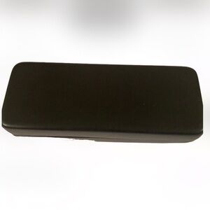 Ted Baker London Black Logo Embossed Preowned Eyeglasses Safety Carrying Case. Black outer shell and inside has a Tiffany blue velvet lining color with logo name. In good condition. 6” across x 2.25 deep x 1.5 tall.