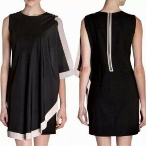 Ted Baker London Black Pink Bolty Drape Zipper Back Sleeveless Shift Dress Sz 6