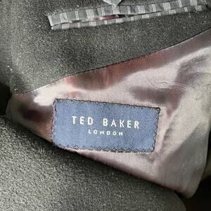Luxurious black wool pea coat by Ted Baker London! This pea coat is in great pre-owned condition with minimal wear (one issue-see last picture--candy for size).