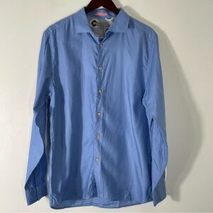 Ted Baker London Blue LS Sunflower Flip Cuff 100% Dress Shirt Size 5 US XL EUC