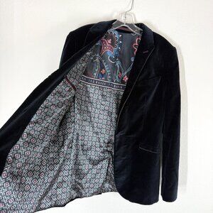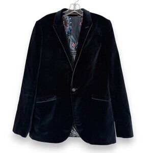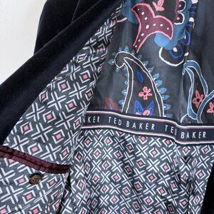 Ted Baker blazer, velvet sport coat, men’s XL blazer, black velvet jacket, paisley lining blazer, holiday party blazer, luxury dinner jacket, formal sport coat, wedding guest outfit, Ted Baker London menswear