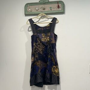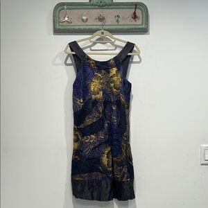Ted Baker London Blue and Gold Sheath Mini silk Dress size 4 USA women’s 8/10