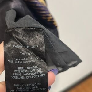 This stunning Ted Baker London dress in size 4 is equal to a 8/10 ( as per website ) showcases a sleeveless, scoop neck design in a captivating blue and gold color palette.