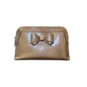 Ted Baker London Champagne Cosmetic Make Up Bag w/ Bow Zipper Logo Pull Tab.