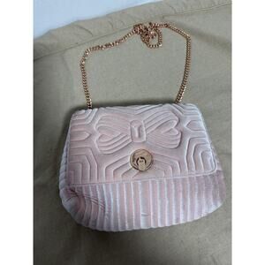 Ted Baker London Crossbody Bag Womens Small Pink Velvet Quilted Bow Rose Gold