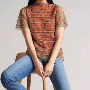 Ted Baker London Damla Pleated Mesh Blouse Stripe Orange