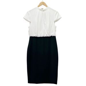 Ted Baker London Daylla Dress Size 3 US 8 Black Ivory Two Tone Mock Neck Pencil