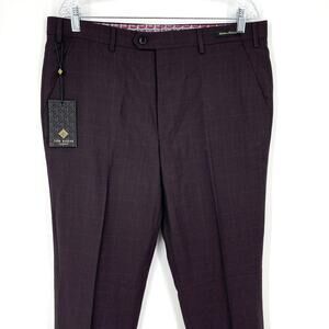 Ted Baker London Debonair Check Wool Trousers Dark Red Men's 36L NWT