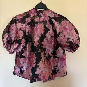 Ted Baker London Ellsiaa Short Sleeve Blouse Floral Tie Neck Business Size 4