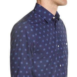 Ted Baker London Final Sale Men's Ilenka Geo Floral Button Front LS Shirt Navy