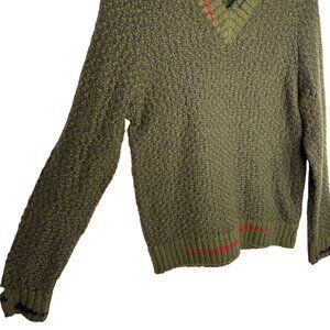 Keywords: Ted Baker sweater, women's knit, green pullover, wool blend sweater, stylish v-neck, warm winter wear, textured sweater, London fashion, ribbed cuffs, long sleeves, versatile knit, durable fabric, classic design
