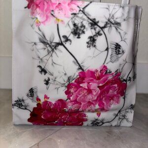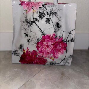 Ted Baker vinyl tote is gently used and in good condition. No rips, tears, or stains. The bag is creased from storage. If stuffed and hit with a hair dryer, the creasing will come out. This tote was only used a handful of times.