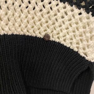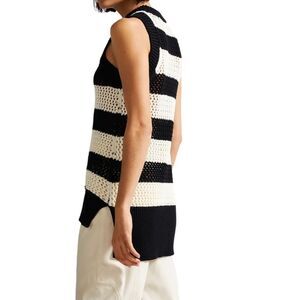 Ted Baker London Heide Open Stitched Striped Tank Top. Black/White. Size 1 (US SZ 4). Knitted tank top, Cotton blend, Sleeveless, Crew neck, Ribbed trim, Wide stripes, Unlined. 72% Cotton, 28% Polyamide. Machine Wash Inside Out 30C. Tumble Dry Low.