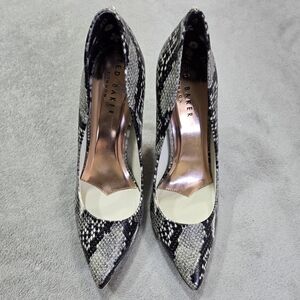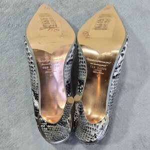 Ted Baker London Izibely Leather Snakeskin Print Black Gray Pointed Toe Pump