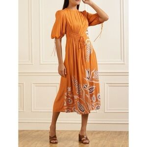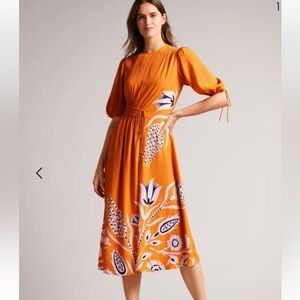 Ted Baker London Jeinay Orange Floral Print Crepe Midi Dress