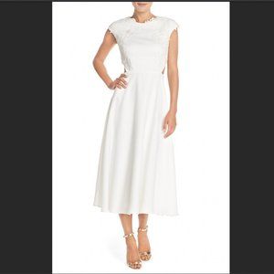 Ted Baker London Lace Appliqué Side Cutout Midi Dress (Ted Baker size 3)