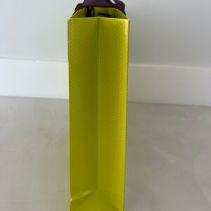Such a cool shopping bag. The outside is lime green and the inside is purple. It has a purple Thai clothes and tissue paper with a sticker that has not been torn.