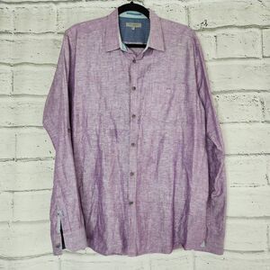 Ted Baker London Linen Blend Longsleeve Button Down Shirt Purple Size 5 XL