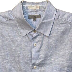 Ted Baker London Linen Cotton Blend Short Sleeve Button Down Casual Shirt Size 5 (XL). This shirt is made of 55% Linen, 45% Cotton. It measures Pit to Pit 22", Length 30".
