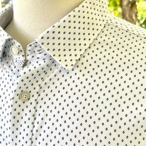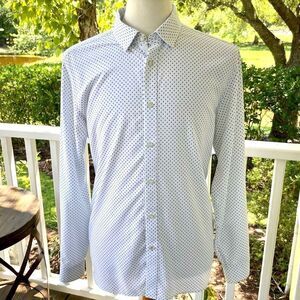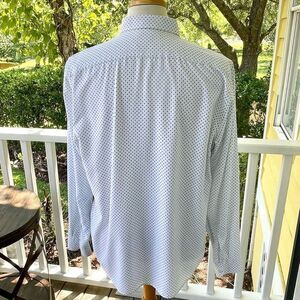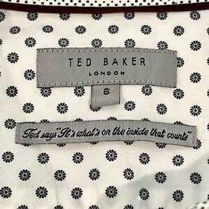 Ted Baker London Long Sleeve Button Front Shirt. Size 6/US size XL. Very clean white shirt with small blue floral design throughout. No stains or damage. From smoke free pet free home. Measurements laying flat: