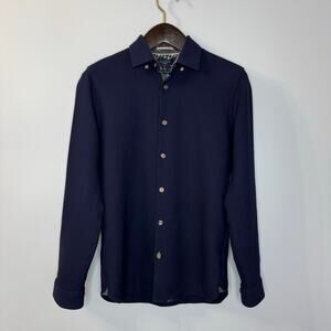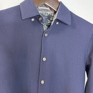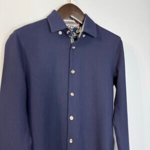 Ted Baker London Loretax Shirt Mens Navy Waffle Stitch Contrast Cuffs 2 Small