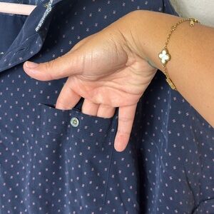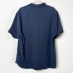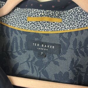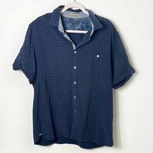 Ted Baker London Men Button Down Short Sleeve Shirt Navy Blue & red print sz 7