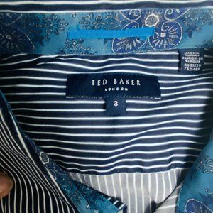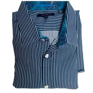 Ted Baker London Men Small 3 Blue Strips Long Sleeve Button Down Dress Shirt