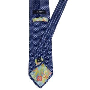 Men's 100% silk blue printed neck tie hand-tailored in USA by Ted Baker.