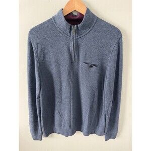 Ted Baker London Men's 1/4 Zip Sweater Blue Soft Size 5 XL EUC Has some wear on collar Viscose Poly Wool Blend