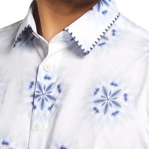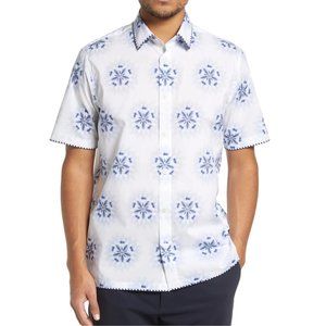 Ted Baker London Men's Paden Blurred Vintage Floral SS Shirt Embroidered White L