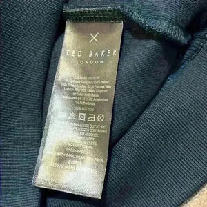 This Ted Baker sweater in a dark navy blue color features a stand-up collar and long sleeves, perfect for cooler weather.