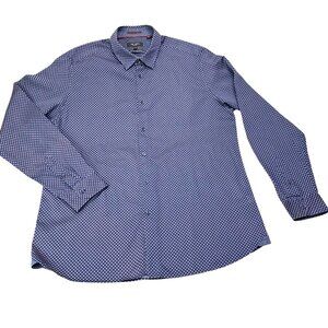 Ted Baker London Merci Navy Geo Print Buttoned Collar Shirt