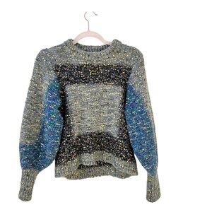Ted Baker London Multicolor Gray Blue Yellow Wool Blend Chunky Knit Sweater sz 2