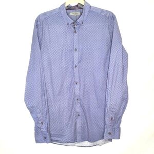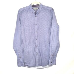 Ted Baker London Navy Geometric Print Shirt Size L (4) Long Sleeve Button Down