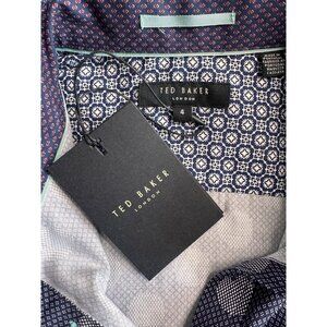 Ted Baker London Navy Large Spot Print Shirt SZ 4/L Long Sleeve Button-Up Flip C