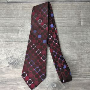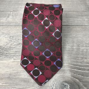Ted Baker London Necktie Red Black 100% Silk Designer Geometric Polka Dot Tie