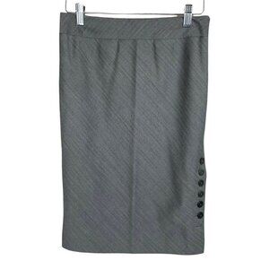 Ted Baker London Pencil Skirt Button Slit Size 1 Gray Lined Side Zip. ***Last button is missing.
